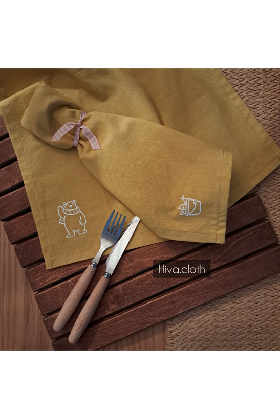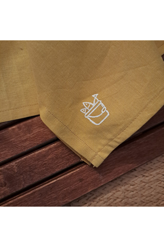 جنس دستمالها لنین هست کاملا جاذب آب ،طرح روی دستمال نقاشی هست که با قلم مو و رنگ مخصوص پارچه اجرا شده و قابل شستشو هست.