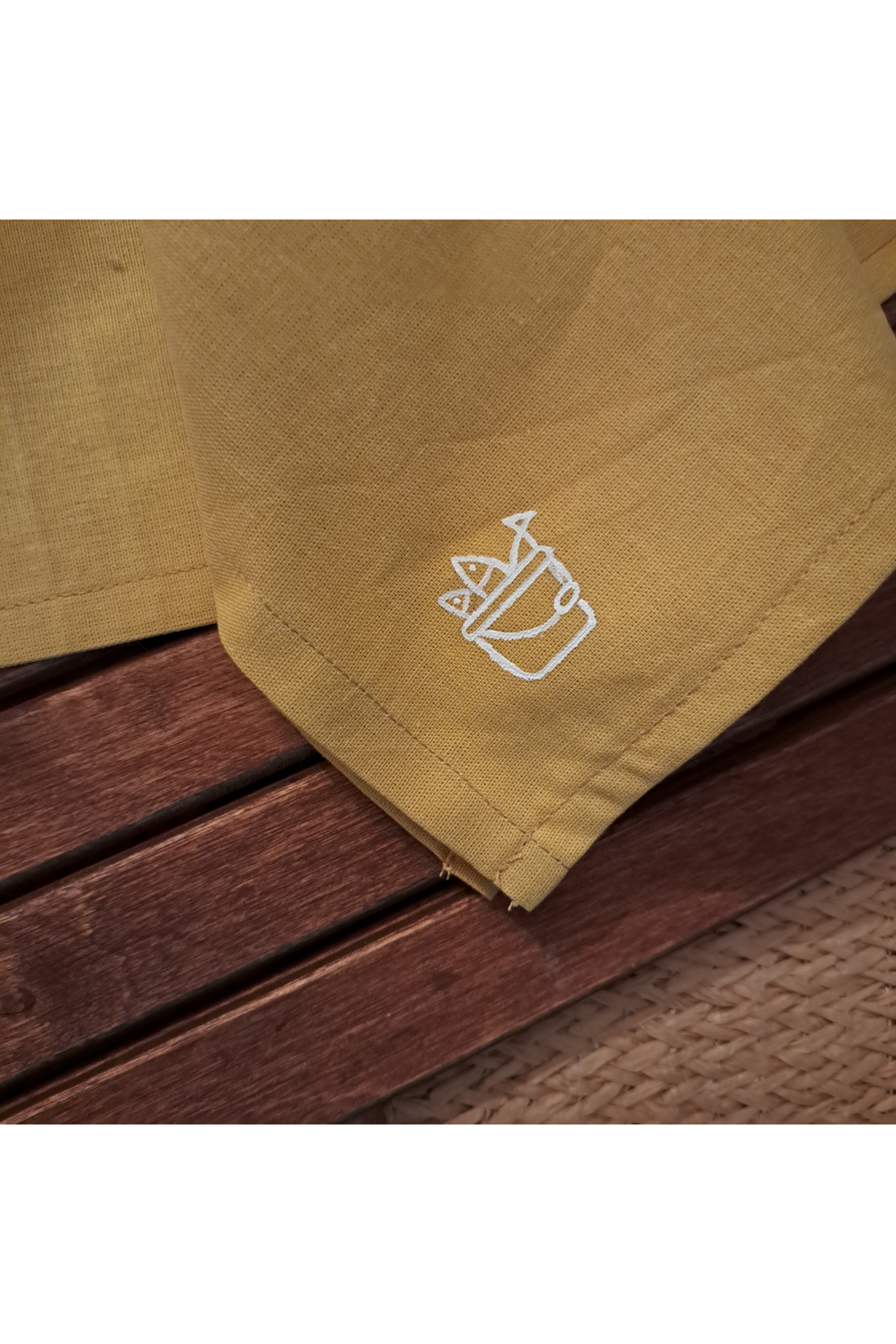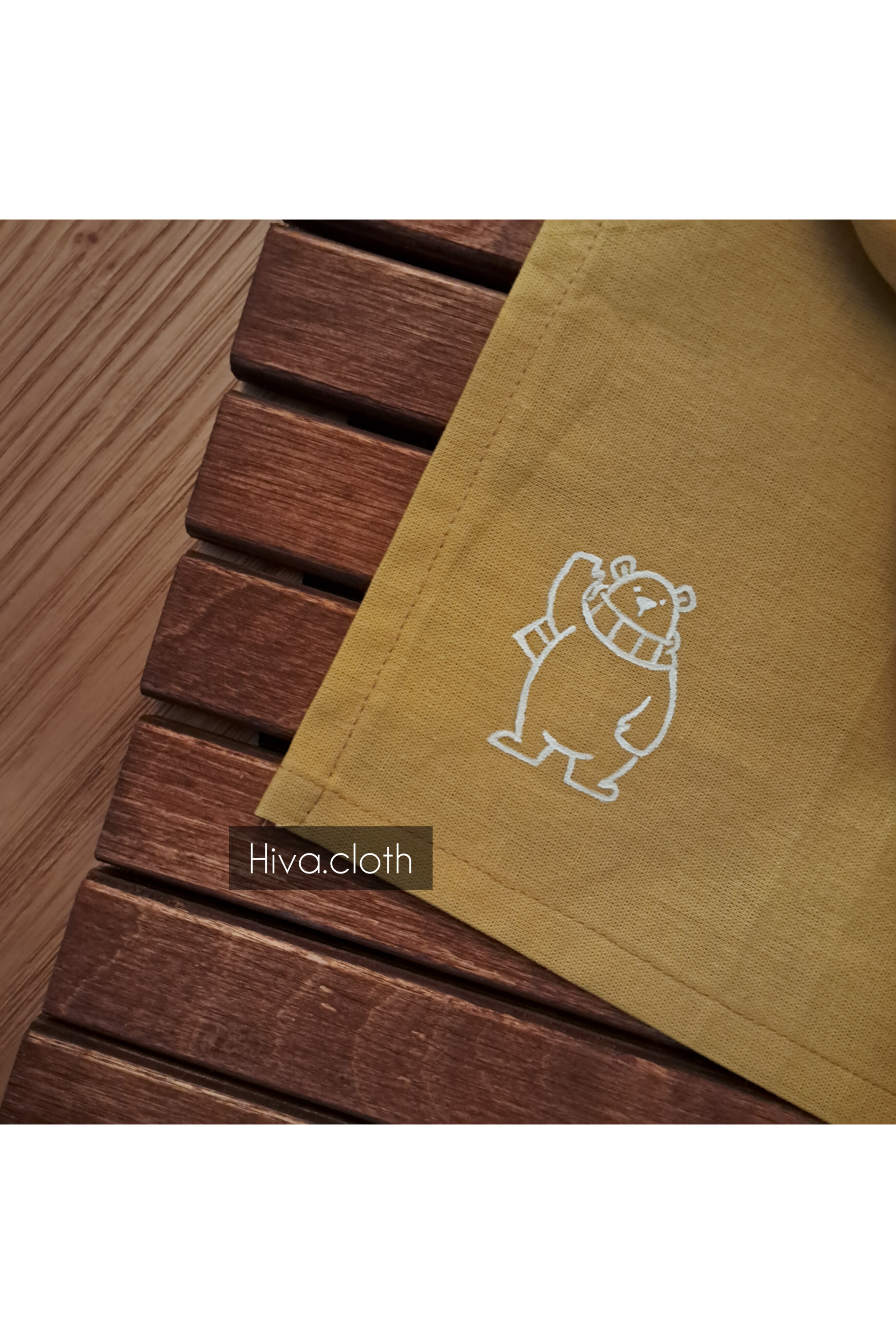 جنس دستمالها لنین هست کاملا جاذب آب ،طرح روی دستمال نقاشی هست که با قلم مو و رنگ مخصوص پارچه اجرا شده و قابل شستشو هست.